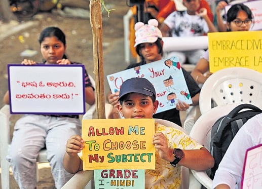 “We strongly believe every child should be free to learn a language of their choice. Forcing them to learn a specific language that may not benefit their academic or professional future is an imposition. This goes against the spirit of inclusivity,” said a parent at the protest.