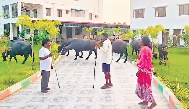 The brief bovine occupation ended when Bhupalpally Inspector D Naresh Kumar arrived with his staff. The police hustled the protesting couple to the station and escorted the buffaloes out. Odelu was booked for trespass and nuisance, a not too surprising twist given the fact that he is a common man.