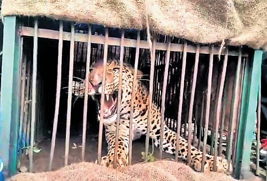 HYDERABAD: After over three weeks of monitoring and amid growing public concern, forest officials successfully captured a leopard that had been roaming on the outskirts of Hyderabad. The male leopard, estimated to be four to five years old, was trapped at the forest trek park in Moinabad around 8.30 pm on Wednesday. It was taken to Nehru Zoological Park for a medical check-up before being relocated to the Amrabad Tiger Reserve in Nagarkurnool district.