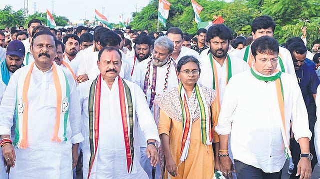 The padayatra is being undertaken along with All India Congress Committee (AICC) Telangana in-charge Meenakshi Natarajan, ministers