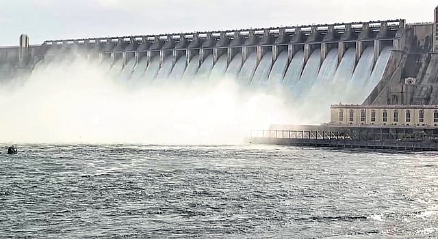 The row began on Tuesday night, when AP officials contacted Telangana officials, requesting the release of water from NSP. On Wednesday, AP Irrigation Engineer- in-Chief K Narasimha Murthy, in a letter to Telangana officials, wrote: “It is to inform you that the Chief Engineer, Nagarjuna Sagar Project, Guntur, reported that sufficient flood cushion in the NSP dam is not being maintained and the crest gates of the spillway are not being operated while duly monitoring the inflows from upstream. The reservoir level in NSP at 11 am on Wednesday was +589.20 feet and the capacity is 309.6546 tmcft; the flood cushion is only 2.4 tmcft. Based on the weather forecast, inflows are further expected to increase in the coming days due to heavy rainfall in the upstream catchment areas. If the crest gates of the spillway are not operated in a planned manner while duly monitoring inflows from upstream, it may lead to untoward incidents in Andhra Pradesh.”