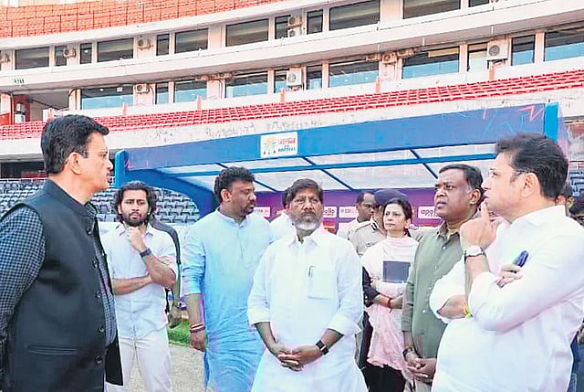 The deputy chief minister, along with IT & Industries Minister D Sridhar Babu, Additional DGP Vijay Kumar, Rachakonda CP Sudheer Babu, visited Uppal Stadium and inspected the arrangements being made for the friendly match.