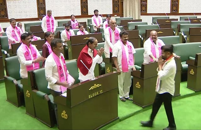 Irrigation Minister N Uttam Kumar Reddy, Roads & Buildings Minister Komatireddy Venkat Reddy, Legislative Affairs Minister D Sridhar Babu, Panchayat Raj Minister Danasari Anasuya were among a host of other members who greeted the former chief minister in the Assembly.