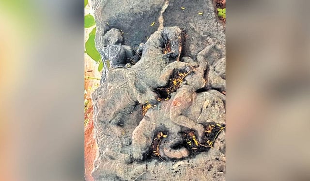 The partially damaged stone shows a warrior overpowering another in battle. Speaking to TNIE, historian Sankepalli Nagendra Sharma urged the government to initiate excavations in the area, stating, “There is a treasure trove of history buried here. The sculpture belongs to the Kakatiya period. Further excavation will reveal valuable insights for future generations.”