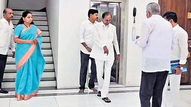 SIDDIPET: BRS MLC K Kavitha on Wednesday went to her father and BRS chief K Chandrasekhar Rao’s farmhouse in Erravalli, minutes before he left for BRKR Bhavan in Hyderabad to depose before the Commission of Inquiry on Kaleshwaram.