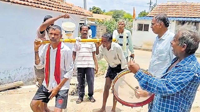 KARIMNAGAR: With June two-thirds through and no sign of monsoon showers, anxious farmers in Peddapapayapalli in Huzurabad Mandal have turned to an age-old tradition — the Kappatalli (frog) ritual — to invoke the rain God to bless their village.