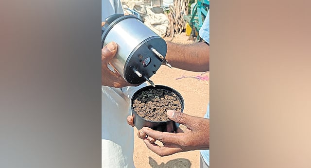 DRDA project officer K Vijayalaxmi told TNIE that the FPO purchased the device from Tamil Nadu for `70,000. She explained that after harvesting, farmers are advised to conduct soil tests one and a half months post-yield to ensure accurate results, as fertilisers used in previous cycles dissolve into the soil.