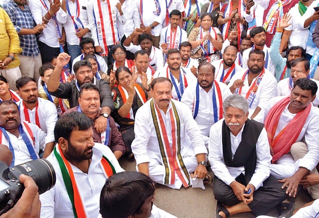 Several ministers, including Ponnam Prabhakar, Tummala Nageshwar Rao, Dr Dansari Anasuya, Jupally Krishna Rao, Dr G Vivek, and Vakati Srihari, participated in the protest.