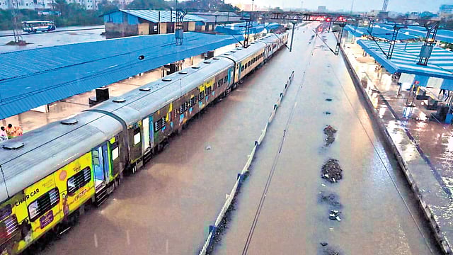 Warangal district bore the brunt of the rain with several colonies in the tri-cities of Warangal, Hanamkonda and Kazipet inundated. The downpour severely impacted the railway network in Warangal district, inundating tracks at Dornakal and Warangal railway stations. The Golconda Express was detained at Dornakal, while the Konark Superfast was halted at Gundrathimadugu and the Krishna Express at Mahbubabad. Several goods trains were also stranded between stations.