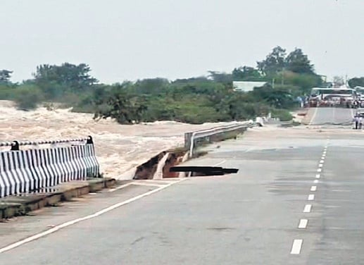 Floodwaters in Vavilkol stream, Dindi rose eight feet, submerging nearby farmlands and damaging cotton crops in Chintabavi village. A house collapsed, and road connectivity between Devarakonda and Dindi was cut off as the Gonakal stream overflowed, stranding vehicles bound for Srisailam.