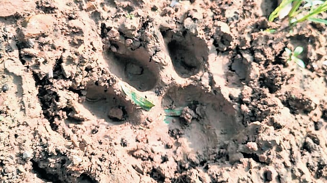 MULUGU : Villagers spotted pugmarks of a tiger near an agricultural field in Vanaguttalu on the outskirts of Palampet in Venkatpur mandal of Mulugu district on Monday. Shepherds also complained of hearing tiger roars in the locality.