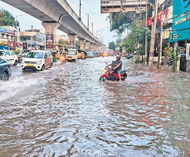 HYDERABAD: Hyderabad reeled under a second spell of heavy rain on Thursday, barely 24 hours after Wednesday’s downpour that brought the city to a standstill. Bright skies in the morning gave way to flooding by night, leaving roads waterlogged and traffic paralysed once again.