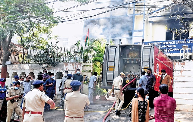 HYDERABAD: A fire broke out at the state Forensic Science Laboratory (FSL) at Lakdikapul on Saturday, leaving in its wake damaged digital and physical evidence linked to several cases, and prompting allegations of mischief by the Opposition parties.