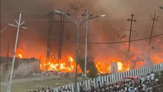 LUCKNOW: A massive fire broke out in a slum in Kanawani village under the Indirapuram police station area of Ghaziabad on Thursday afternoon. The blaze was so intense that flames were visible from nearly 10 km away, triggering panic as residents rushed out of their homes.