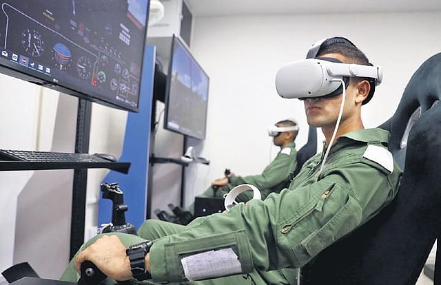 The officers elaborated on how fighter pilots undergoing stage-2 training at Hakimpet are benefiting from hands-on training while wearing VR headsets, allowing them to virtually experience flying in a simulated environment on the ground. This indigenous technology-based virtual simulation training has proven to be cost-effective, saving expenses that would have otherwise been incurred on flying hours using actual aircraft, Kalyan Chakravarthy, one of the officers, told TNIE.