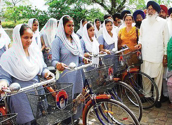 As during its previous tenure (2007-2012), the Shiromani Akali Dal (SAD)-BJP government will provide 1.50 lakh bicycles to schoolgirls under the state-run Mai Bhago Vidya Scheme with Badal’s photo on them.