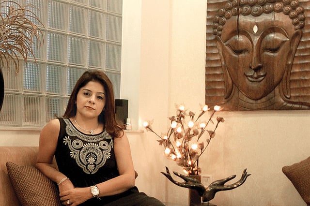 Delhi girl Meghna Mirchandani loves the Buddha; anyone walking into her house is greeted by a gigantic Buddha smiling serenely from the wall. One of Delhi’s much-in demand interior designers, she got her diploma from Jenson and Nicholson Institute, Delhi. Her company Dimensions, set up in 2006, undertakes turnkey projects for homes, offices, institutions and restaurants. She specialises in furniture design, and her preferred materials are solid wood, steel and leather, customized according to the needs and comfort of the user.