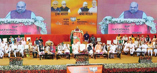 NEW DELHI: Firmly in the saddle at the centre, the BJP has now set its eyes on ensuring that the poll-time slogan of a “Congress-mukt” India is achieved in the states too. This other political message was that the BJP would be extending its ideological push beyond the cow belt to the East and the South as well. The BJP’s national council meet held for the first time after the party won the Lok Sabha polls had symbology both of men and matters.
