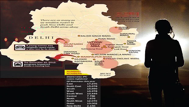 In two days, concerned citizens of Delhi will gather at Jantar Mantar in a ritual to mourn Nirbhaya, the victim of the brutal gang rape and murder that happened in a moving bus on a wintry night in December 2012. Yet, the monsters lurking in the dark are real in the nightmares of the city’s women. A young woman was raped last week in an Uber cab while returning home from a party. In Delhi, young girls and women are assaulted and raped in radio taxis, private cars, on the way home at night from work or on lonely, unlit stretches where sexual predators prowl out of sight of police patrols or the random CCTV camera. After the Nirbhaya incident, Delhi Police carried out a crime mapping of places in the city, which are deemed dangerous for women.