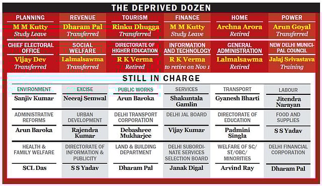 Of the 30 important departments, 12 departments—Finance, Home, General Administration, Tourism, Planning, IT, Power, Social Welfare, Revenue, Higher Education, New Delhi Municipal Council and Chief Electoral Office—have remained without their heads for more than a month now.