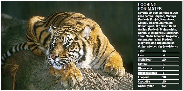 Endangered animals such as lions and tigers are left waiting for partners in many zoos, which causes behavioural issues such as stress among these animals and even reduces their life span. Concerned over the imbalance in sex ratio, the Central Zoo Authority (CZA) has now written to nearly 200 zoos across India asking them not to keep single animals for over six months and make arrangements for procuring viable partners. However, the zoos are not willing to part with or exchange their star attractions.