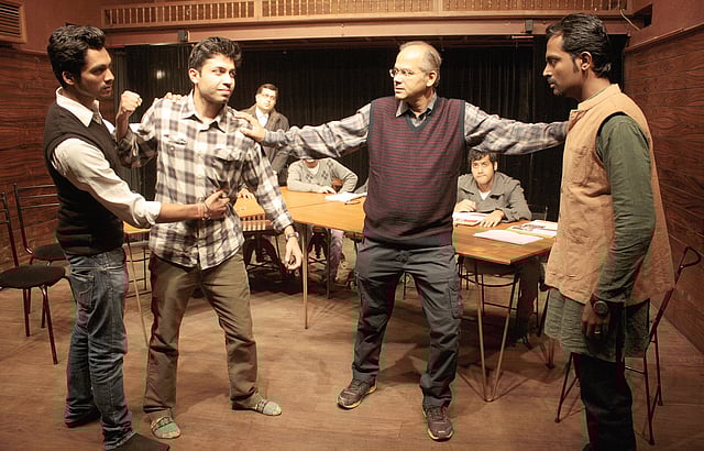 Soon after being proclaimed a cinematic masterpiece in 1957,  Reginald Rose knew he had created a classic in Twelve Angry Men. Since then, he saw himself and many other directors adapting the teleplay onto stage, infusing the narrative with their creative improvisations. Director Rakesh Palisetty, who has most recently attempted to present the same story within a theatrical framework at Akshara Theatre, says his fascination with the story made him tackle the tale his own way. “The concept of 12 seemingly ordinary men, each as it turns out with major shortcomings and character defects, psychological problems, emotional problems etc., locked up in a small room, deciding on a man’s life or death, was an idea I found interesting,” says Palisetty, who then challenged himself to present the idea on stage.
