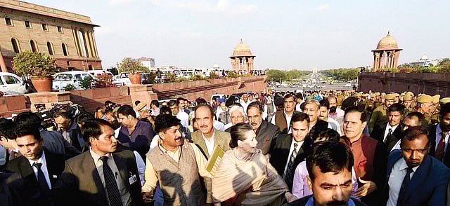 After a speech in Parliament came the real telegenic event: a dramatic 14-party march from Parliament to Rashtrapati Bhavan, with her being accorded the leadership position by figures from all opposition parties. The ease and naturalness with which she took to that role and shepherded the flock of opposition MPs showed a new confidence.