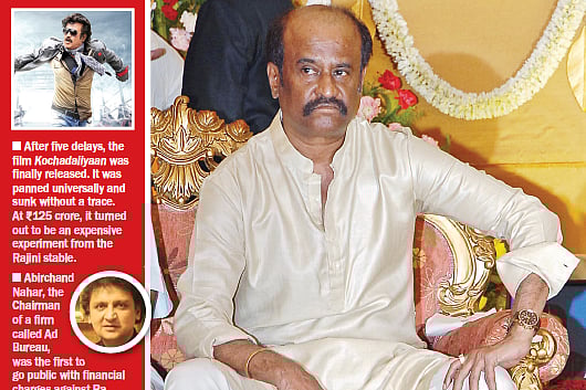 Abirchand Nahar, the chairman of a firm called Ad Bureau, was the first to go public with these charges in November last year. Kochadaiiyaan’s producers Mediaone Global Entertainment had a criminal cheating case slapped on them. “Mediaone approached us to loan them Rs 30 crore a month before Kochadaiiyaan released last May as they needed money to release the film. We initially released Rs 10 crore, but only with the stipulation that we come on board as post-producers of the film with the distribution rights for the Bhojpuri version and so on,” Nahar explained. They would have released the rest of the cash, except they received a notice from Punjab National Bank that Mediaone was being monitored for financial irregularities.