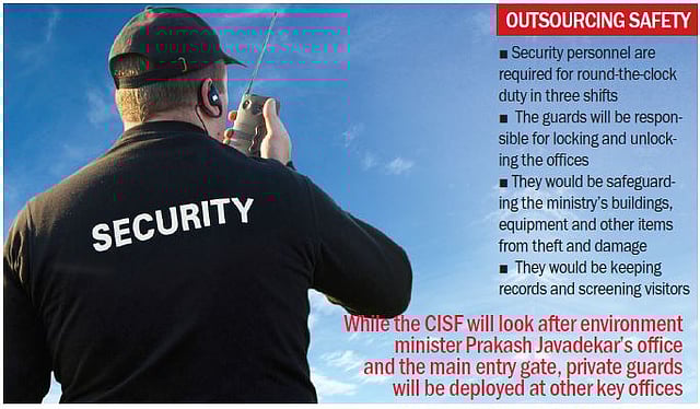 While CISF personnel will continue to look after Environment minister Prakash Javadekar’s office and the main entry gate, private guards will be deployed at other key offices.