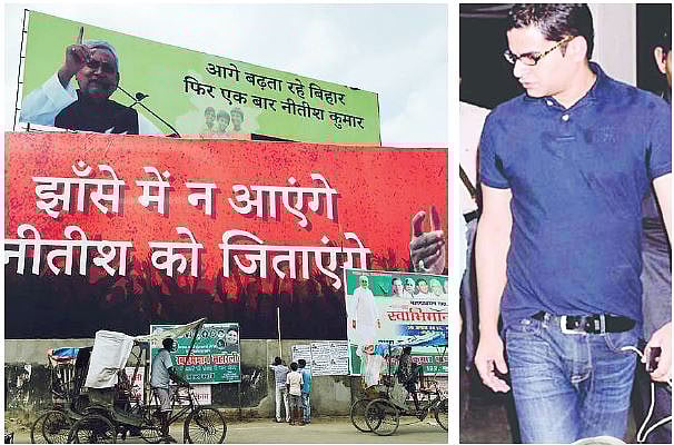 In branding Nitish, Kishor and his team are very careful to distance him from Lalu Prasad and Sonia and Rahul Gandhi. Initially, Nitish’s billboards didn’t give space to any other leaders of the Grand Alliance. “This was deliberately done to keep Nitish’s persona above them as people still trust him and he is seeking a third term,” says a party leader close to the CM.