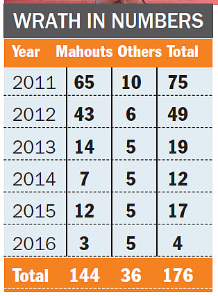 Apart from mahouts, 10 women—a girl student, a veterinary doctor, an elephant owner and a vegetable vendor—have been victims of the animal wrath.