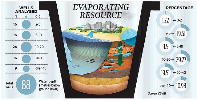 “About 52 per cent of the wells monitored have registered decline in groundwater levels, mostly in the range of 0-2 metres. The states in which the problem is more acute are Chhattisgarh, Delhi, Dadar & Nagar Haveli, Haryana, Punjab, Rajasthan and Tamil Nadu,” CGWB data revealed.The report attributed this to withdrawal of groundwater in excess of the annual recharge from various sources and destruction of natural waterbodies like lakes and ponds which in turn results in a decline in natural recharge of groundwater.