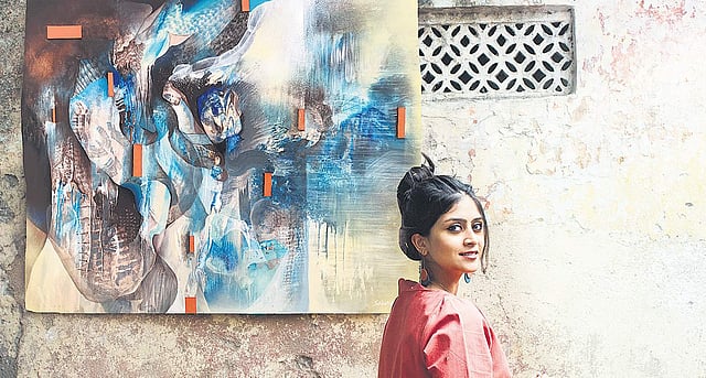 Caught in a labyrinth of emotions, she has disguised them with jaunty colours. The journey is completely inward and colour oriented. For instance, her obsession with the colour blue, began when she visited fashion designer YSL’s home, Jardin Majourelle, in Marrakech. She was introduced to the most glorious blue pigment patented as International Klein Blue, the colour of his home. “My attachment to the colour got so intense that I even dyed my hair the same shade,” says Sharma.