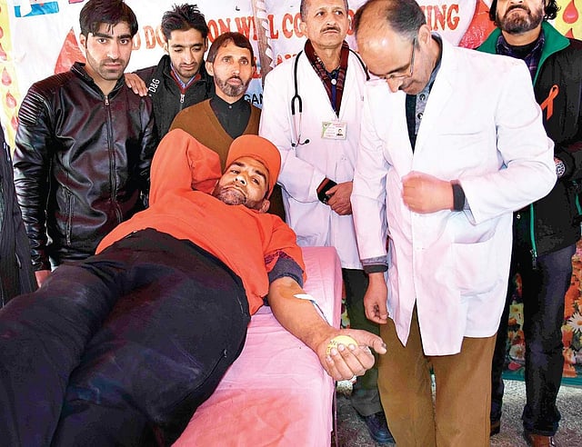 SRINAGAR: You could call Shabir Hussain Khan the ‘Blood Man’ of Kashmir. He has donated blood 159 times so far and wants to continue the good work. The 55-year-old is a papier mache artist and lives in Nowhatta area in Srinagar His blood group is O+ and he been donating blood since he was 18. “I first donated blood in 1980 when I was 18. A footballer friend of mine was injured and I donated blood for him,” Shabir told The Sunday Standard. The 159th time he donated blood was last Thursday.