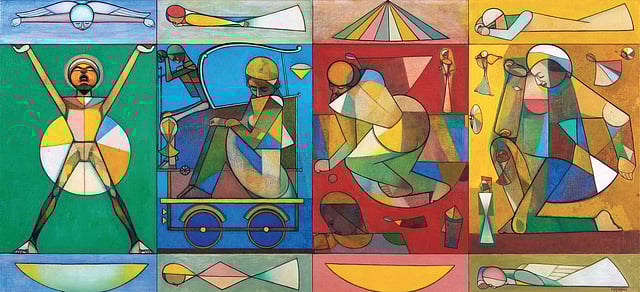 Oil paints have a particular kind of luminosity which lends a beautiful look to the work.” He also makes sculptures and murals, but “I love painting the most as it transports me to another level.” The artist held his first solo in early 1980 while still in school, and has since held a number of shows across India and in New York, Paris, Hong Kong, Dubai, Singapore, UK, among others.