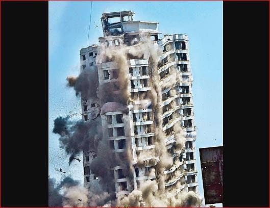 While a section of the gathering was excited at the prospect of catching a glimpse of the spectacular collapse of the towering structures, there were others - relatives and friends of the former occupants of the sky-rises being razed to the ground - who were visibly saddened at the turn of events. The onlookers also included those who justified the demolition as a logical conclusion and the price those responsible for tweaking the laws should be made to pay.