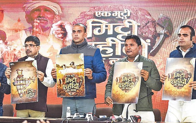 A nationwide campaign, “Ek Mutthi Mitti Shaheddon Ke Naam” has been launched in support of the farmers’ movement.