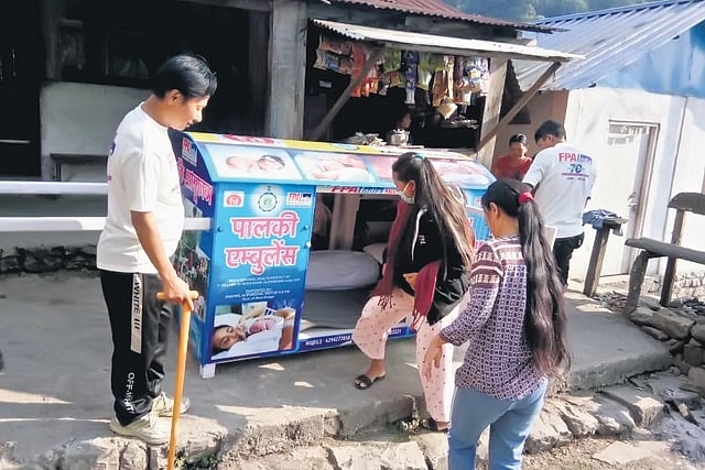 The unique service was launched early this year with two palanquins stationed in the remote villages. “The goal is to station one palanquin in each village and cover the whole 11 villages with this facility,” said Meena.