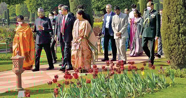 NEW DELHI: Chief Justice of India N V Ramana and judges of the Supreme Court along with their family members visited the Mughal Gardens at Rashtrapati Bhawan on Saturday on the invitation of President Ram Nath Kovind.