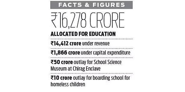 Going by the estimates of Rs 16,278 crore, the education sector continued to get the highest allocation in this year’s budget as well. Sisodia said there were many children belonging to homeless families who live on footpaths, under the flyovers and in the open spaces at the religious places and even around the railway platforms. “They are deprived of basic facilities of food, shelter and education,” he said while proposing a boarding school for the city’s homeless children.