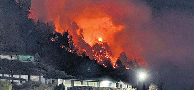 Nainital Sub-Divisional Magistrate Pramod Kumar said, “The wildfire is spreading uncontrollably from the pine forests to the Lariyakanta forests. Efforts are on with the assistance of an IAF helicopter to extinguish it.”