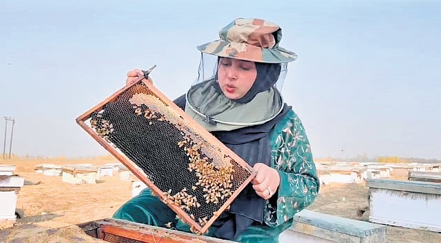 Saniya, a resident of Balhama area in peripheries of Srinagar, took to beekeeping from an early age, keenly observing her father as he worked at his bee farm. Like any young girl, Saniya too was afraid of the bee sting and would shoo them away when they got too close. But this fear only filled her with a sense of fascination and respect for the little creatures, sowing the seeds for an endeavour that would later define her livelihood.