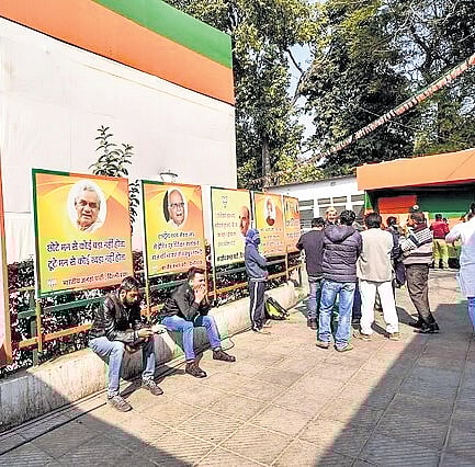 Most voters could be seen stopping by the booths set up by booth-level agents from the BJP before heading over to their respective polling booths.
