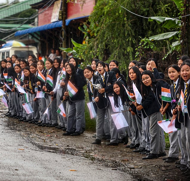 “Modiji,” shouted a bystander while children were almost hysterical, shouting the PM’s name. The festooning that was arranged and a new slick road -- from the helipad to the Peace Ground in Churachandpur did not have much use then.