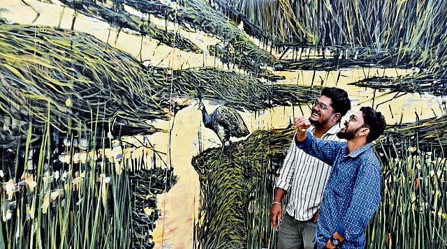 And the exhibition is drawing many curious visitors. For medical student Aparna Menon from Thiruvananthapuram Medical College, it was a random flex board that invited her onto the campus. This is her first time seeing an art exhibition. “They have all done a beautiful job with this show. I felt like each artwork holds so many meanings,” she says.