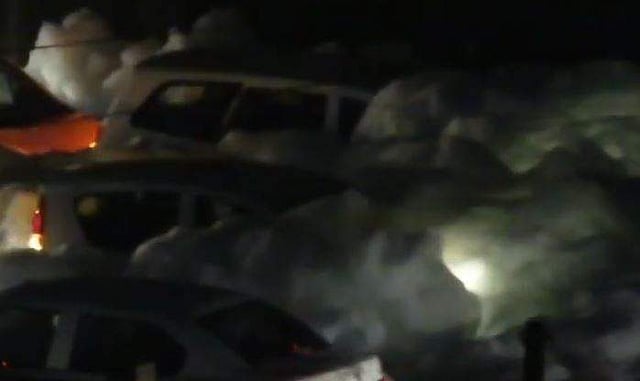Bengaluru: Cars drive through the foam from polluted Bellandur Lake