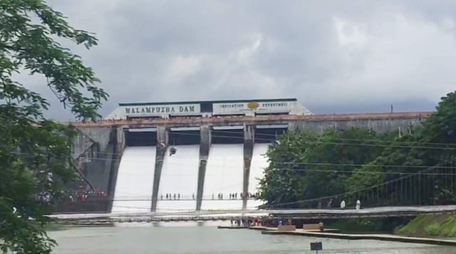 The four spillway shutters of the Malampuzha dam was opened by three centimeters each after the level reached 114.88 meters .