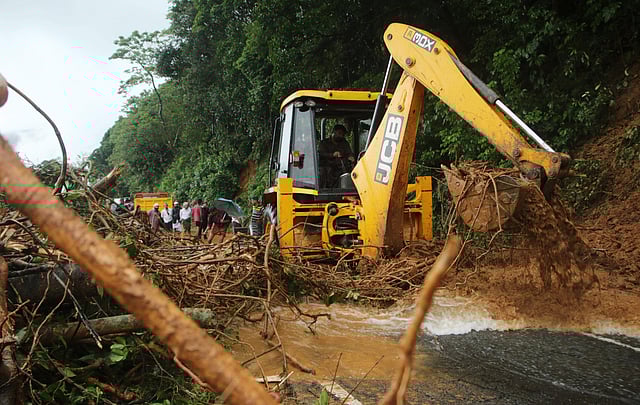 Rescue team engages restoring the Kuttiady ghat road which damaged after landslide. (Photo | TP Sooraj / EPS)