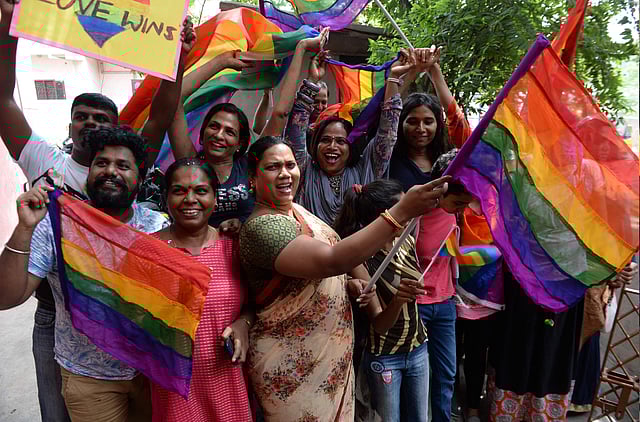 Members of the LGBT community in Chennai celebrate after the Supreme Court decriminalised homosexuality on 6 September 2018. (Photo | EPS)