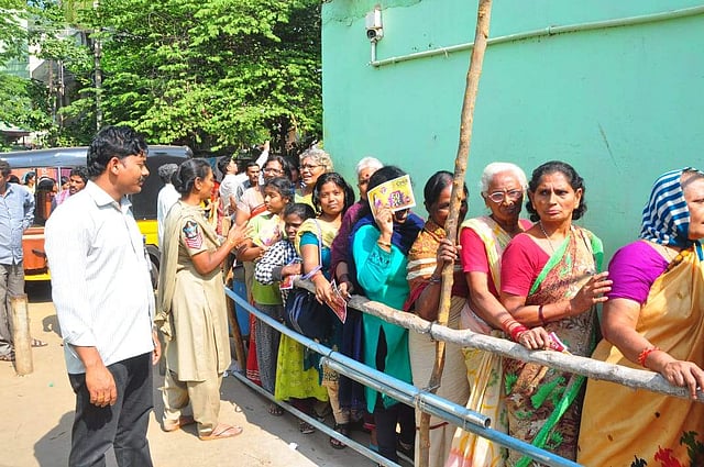 People standing in queues to buy onions. (Photo | G Satyanarayana)